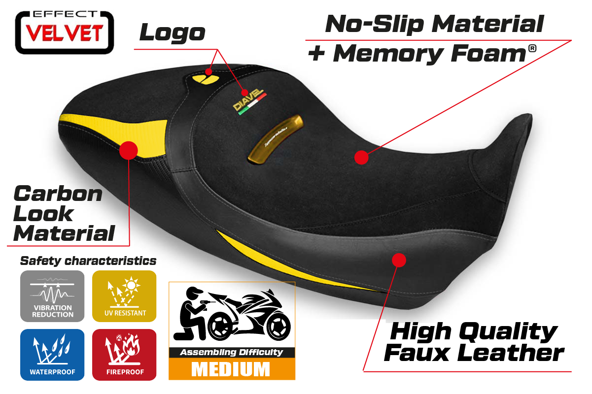Ducati Diavel 1260 1260S 2019-2023 Seat Cover Tappezzeria Italia Comfort in Yellow and Black