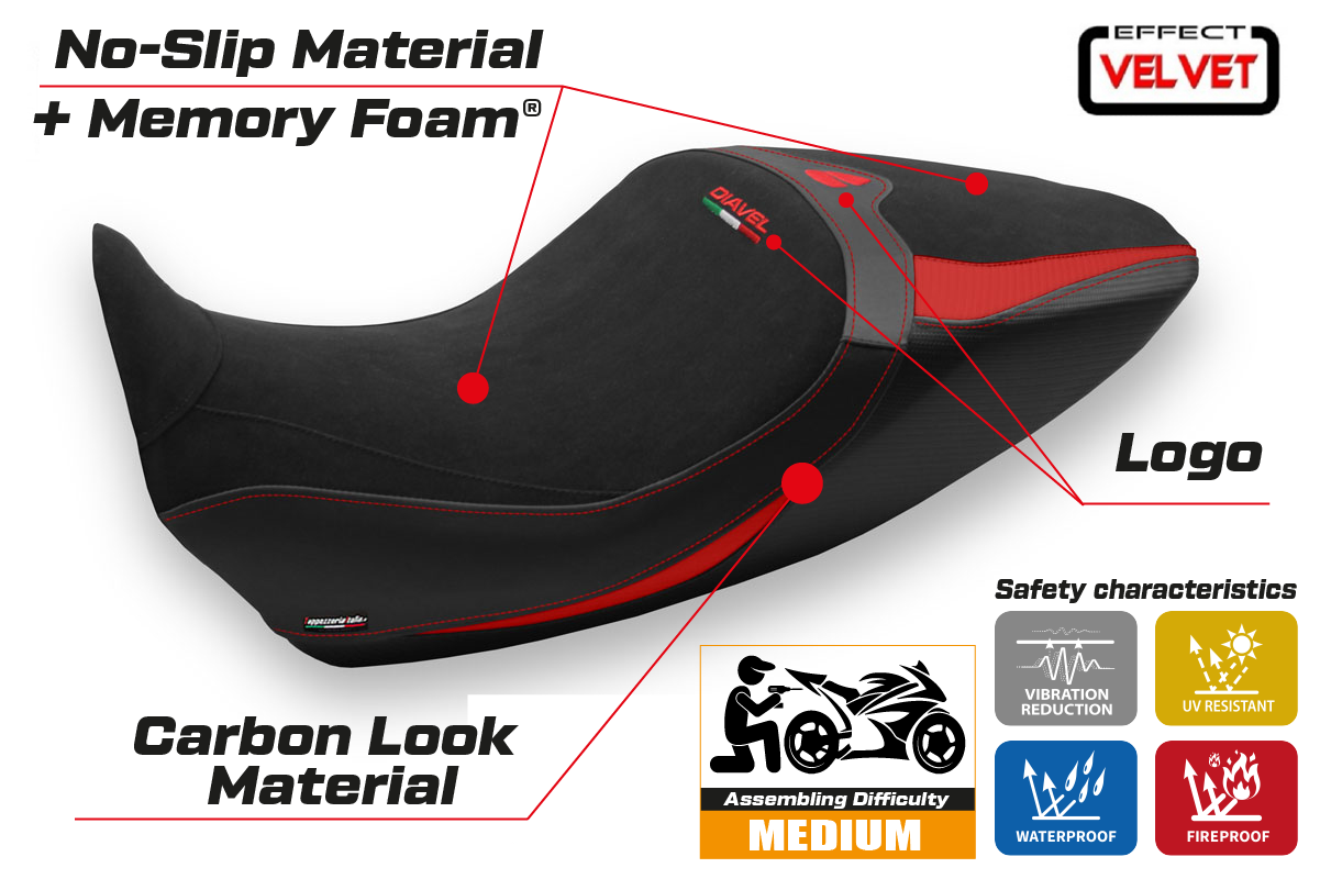 Ducati Diavel 1260 2019-2023 Seat Cover Tappezzeria Italia Comfort in Black and Red
