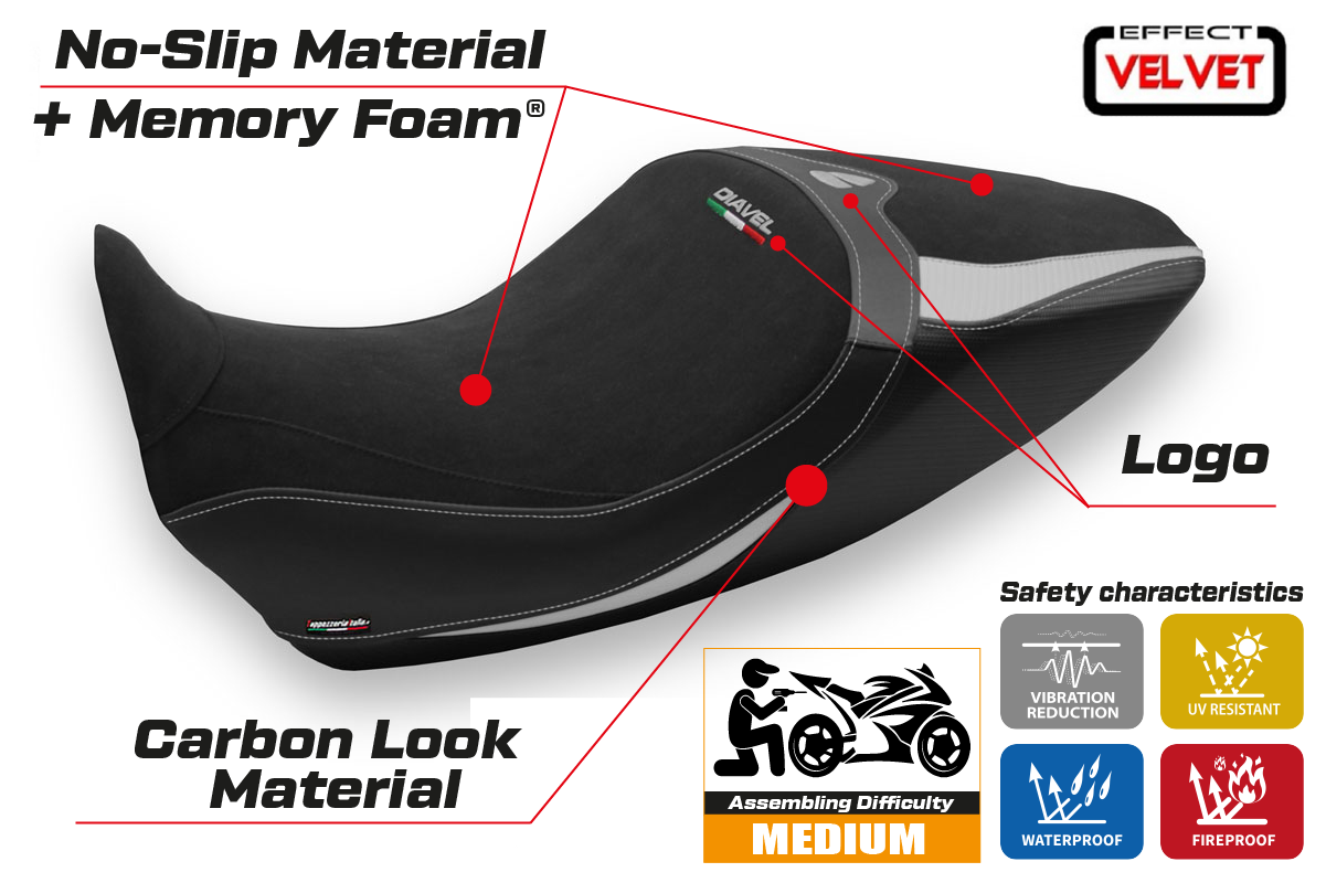 Tappezzeria Italia proudly stands as the sole innovator of this groundbreaking system globally. With our Comfort Seat Covers, you not only enjoy a fresh and stylish design but also exceptional comfort. This is made possible by the memory foam within the cover, which morphs your motorcycle seat into a full-fledged "Comfort System" saddle.