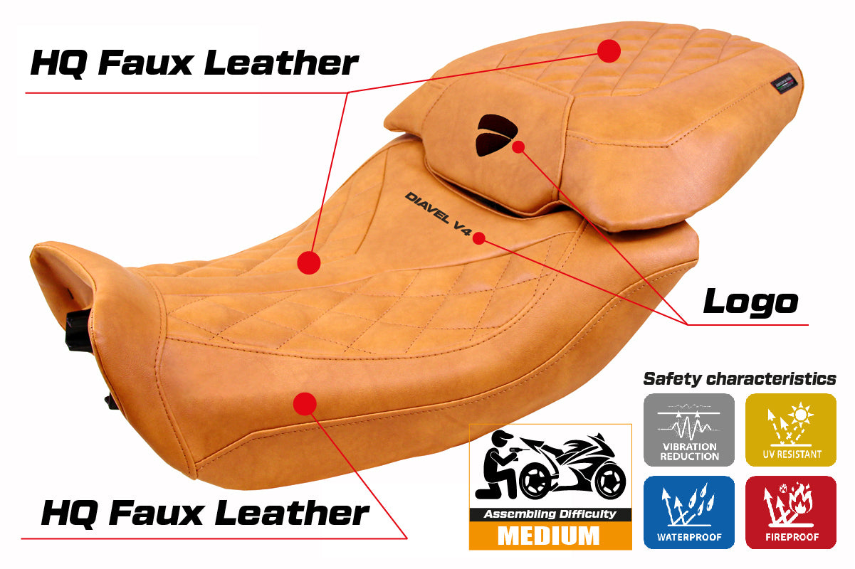 Ducati Diavel V4 2023-2025 Seat Cover Tappezzeria Italia in Diablo Classic Leather Camel
