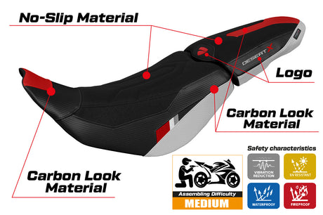 $335.00 USDUnit price /UnavailableDucati Desert X 2022-2025 Seat Cover Tappezzeria Italia in Thar Ultragrip White, Red and Black