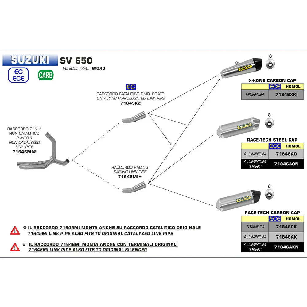 Arrow X-Kone Exhaust, Nichrome for Suzuki SV650 2017-2024 71846XKI