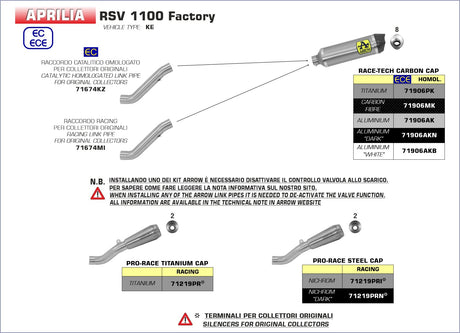 Arrow Aprilia Tuono 1100 V4 Factory '19/20 Racing Titanium Link Pipe 71746mi
