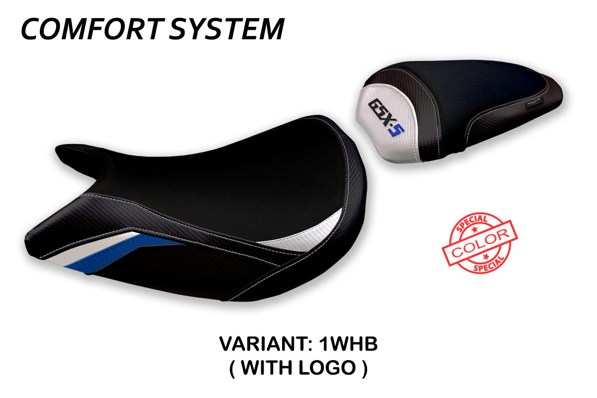 Suzuki GSXS 1000 2015-2020 Seat Cover Tappezzeria Italia Comfort in White and Blue