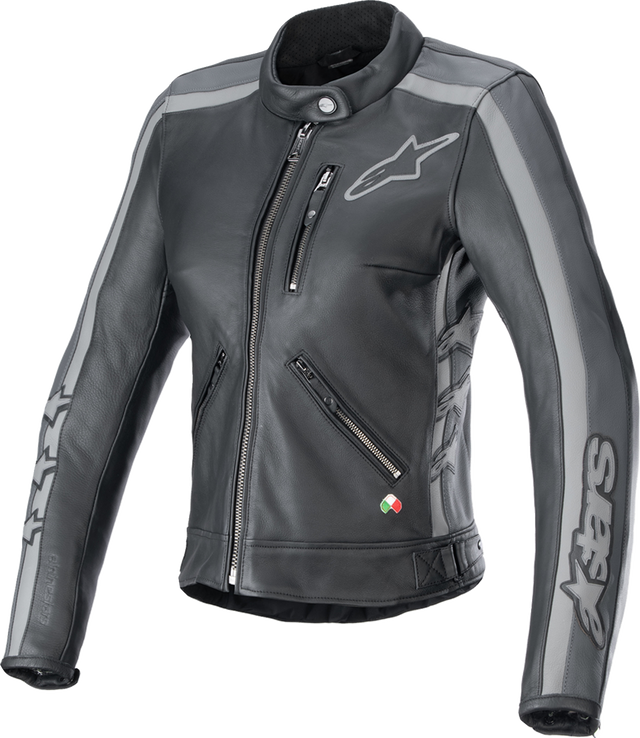 ALPINESTARS Women Stella Dyno Leather Jacket - Black Tar Gray/Dark Gray - Small 3113924-1296-S