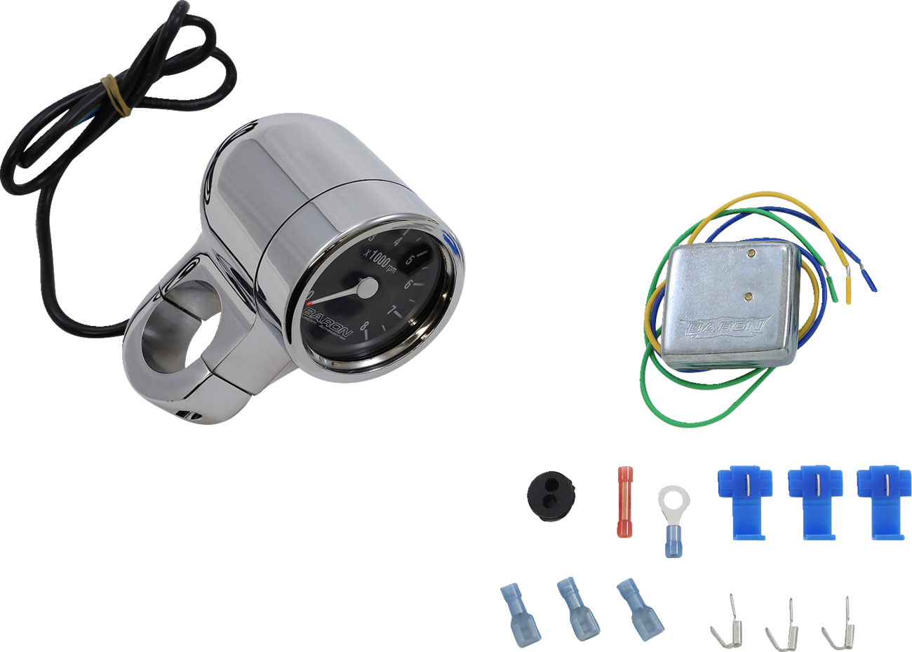 BARON 3" Bullet Electronic Tachometer Fits 1-1/2" Bar - Chrome - Black Face - 3.5" L x 2.875" D BA-7577U está agotado y se enviará tan pronto como vuelva a estar disponible.