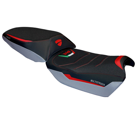 Ducati Multistrada V4 Rally 2023-2025 Seat Cover Tappezzeria Italia Ultragrip in Red and Silver
