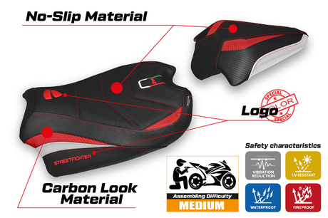 $388.00 USDPrecio unitario /AgotadoDucati Streetfighter V4 2020-2024 Seat Cover Tappezzeria Italia Ultragrip in Red, White and Black