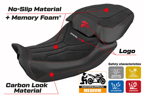 $392.00 USDPrecio unitario /AgotadoDucati Diavel V4 2023-2025 Seat Cover Tappezzeria Italia in Diablo Comfort Velvet Red and Black