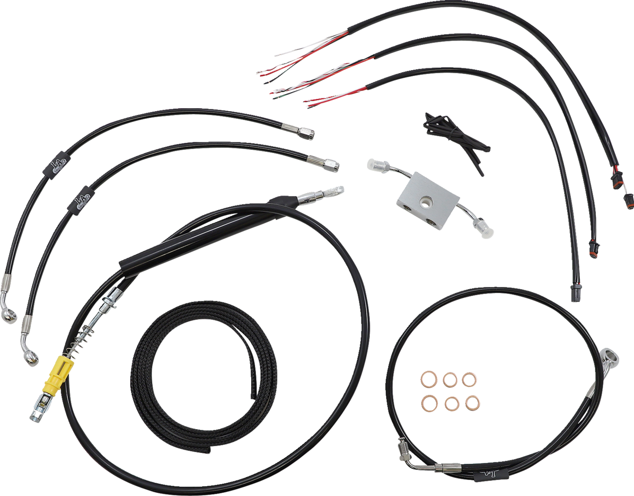 - Complete kit includes the correct length braided brake/clutch lines and wire extensions to complete a handlebar swap