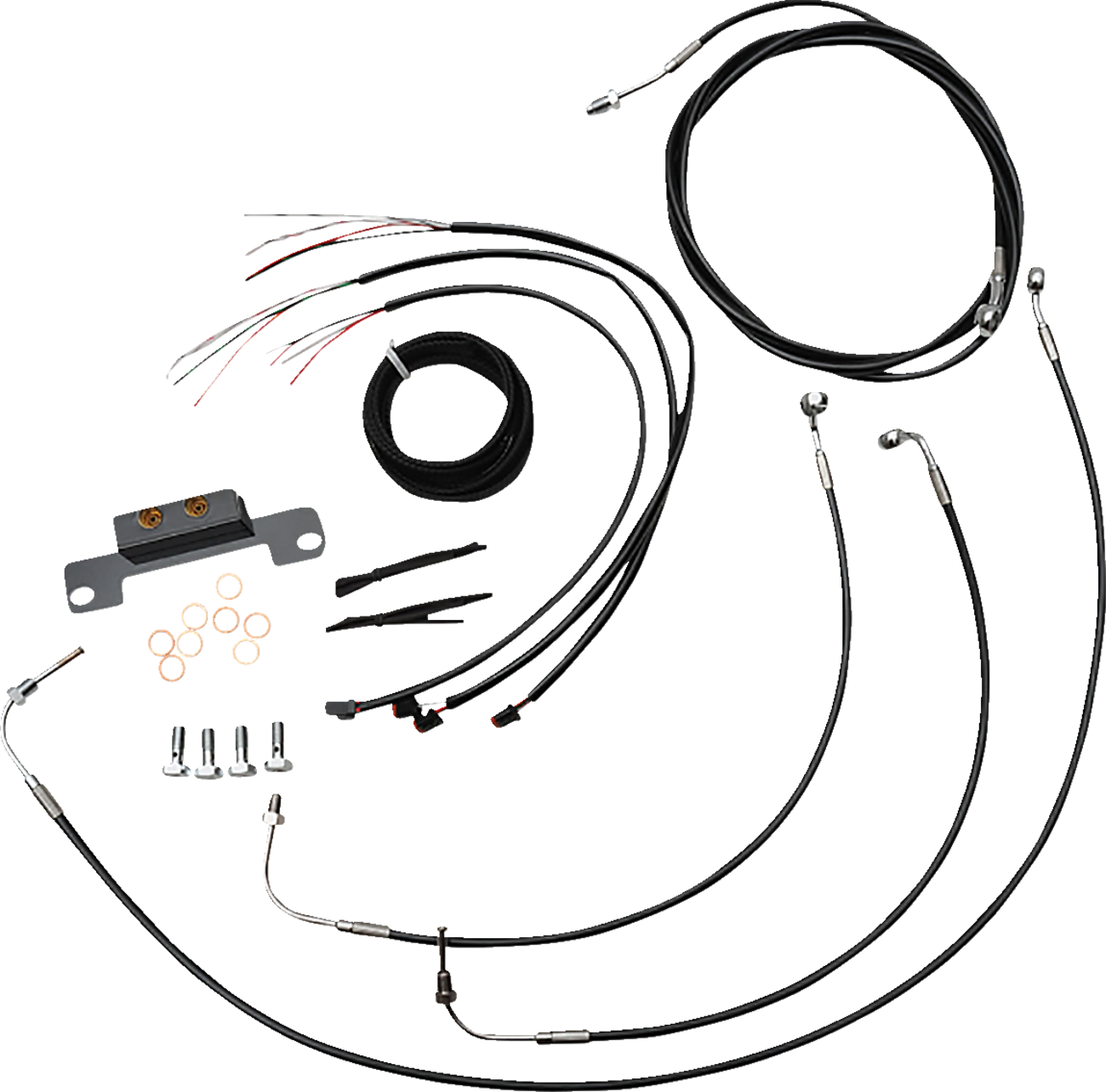 • Complete kit includes the correct length braided brake/clutch lines and wire extensions to complete a handlebar swap