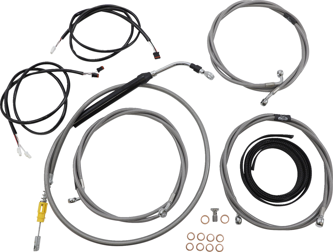 - Kit includes correct length braided cables, brake/clutch lines and wire extensions to complete a handlebar swap