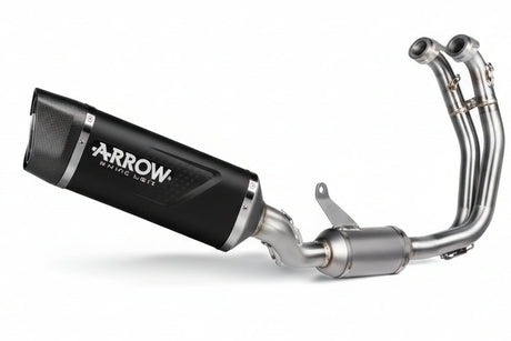 Los escapes Arrow se fabrican en Italia con materiales de alta calidad como titanio, fibra de carbono y acero inoxidable. Ofrecen sistemas completos y silenciadores slip-on, tubos de enlace, colectores y colectores para diversas marcas y modelos de motocicletas, como BMW, Kawasaki (como la Z900) , Suzuki, Yamaha y otras.
