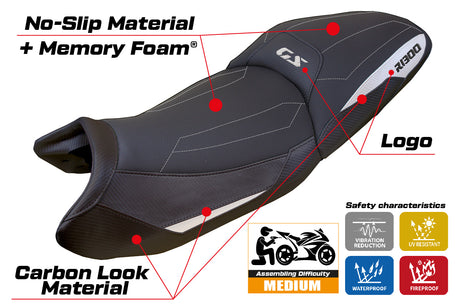 Funda de asiento BMW R1300GS 2023-2025 Tappezzeria Italia TPZ Comfort calefactable en blanco y negro