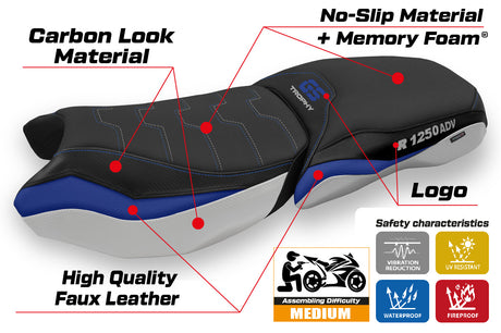 Funda de asiento calefactable Comfort Tappezzeria Italia TPZ para BMW R1250GS ADV 2019-2024 en azul