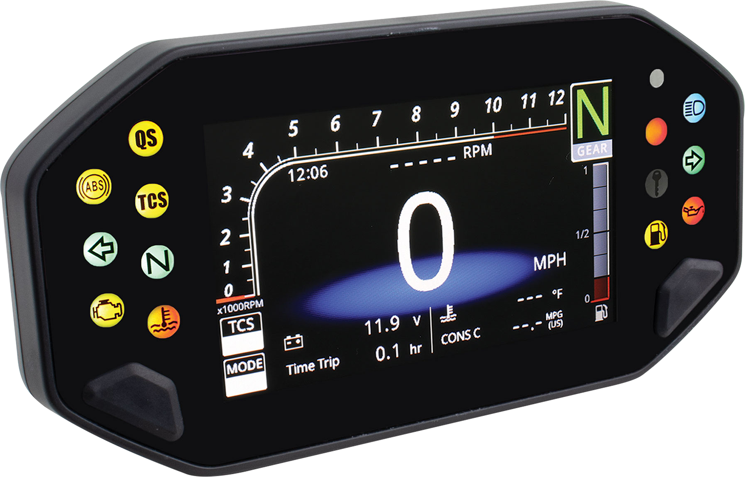 - Incluye velocímetro, odómetro, cuentakilómetros parcial, contador de horas, voltaje, reloj y cronómetro, además de 6 luces indicadoras.