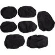 - Las fundas de los asientos están hechas de poliéster recubierto de uretano de 600 deniers y usan elástico alrededor del borde exterior para sujetarlas debajo de la base del asiento y el respaldo.