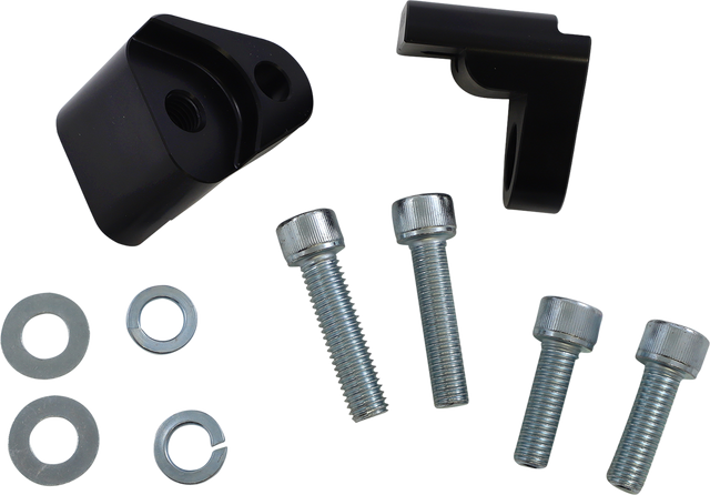 - Bloques de elevación de palanquilla mecanizados por CNC de 1” con acabado anodizado negro que elevan la parte trasera de los modelos FLT Touring/Bagger