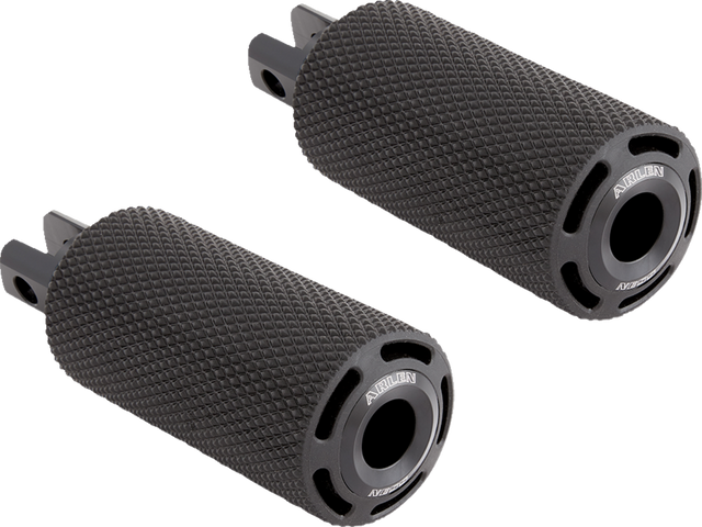 - Los reposapiés Cush cuentan con un diseño de goma en forma de panal de gran tamaño que reduce la vibración y un patrón de diamante moleteado para una mayor tracción del pie.