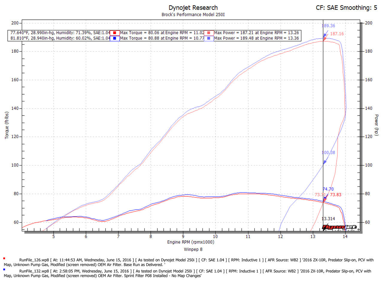 Aumento de potencia: El filtro Sprint P08 ofrece el máximo rendimiento en todas las motos que hemos probado. Las pruebas en el banco de pruebas demuestran que el P08 proporciona la cantidad de aire adecuada con la mayor consistencia. Esto se consigue proporcionando más aire, más potencia y más filtración que cualquier filtro OEM. -