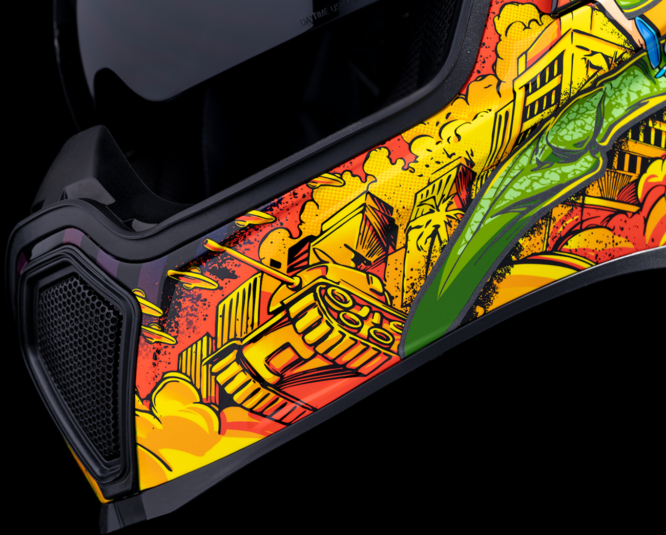- Removable molded breath deflector and chin curtain