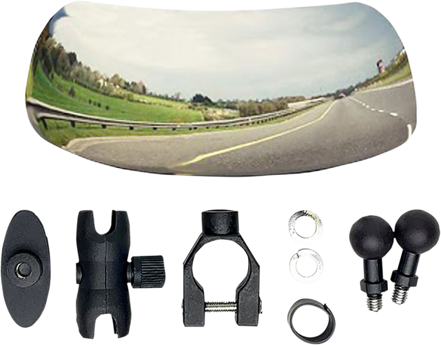 - Curved mirror design provides the rider with a 180º view of surrounding traffic and eliminates blind spots