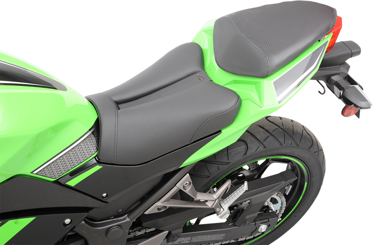 SADDLEMEN Gel Channel Track Carbon Fiber Sport Seat - Black - EX300 0810-K055 is backordered and will ship as soon as it is back in stock.